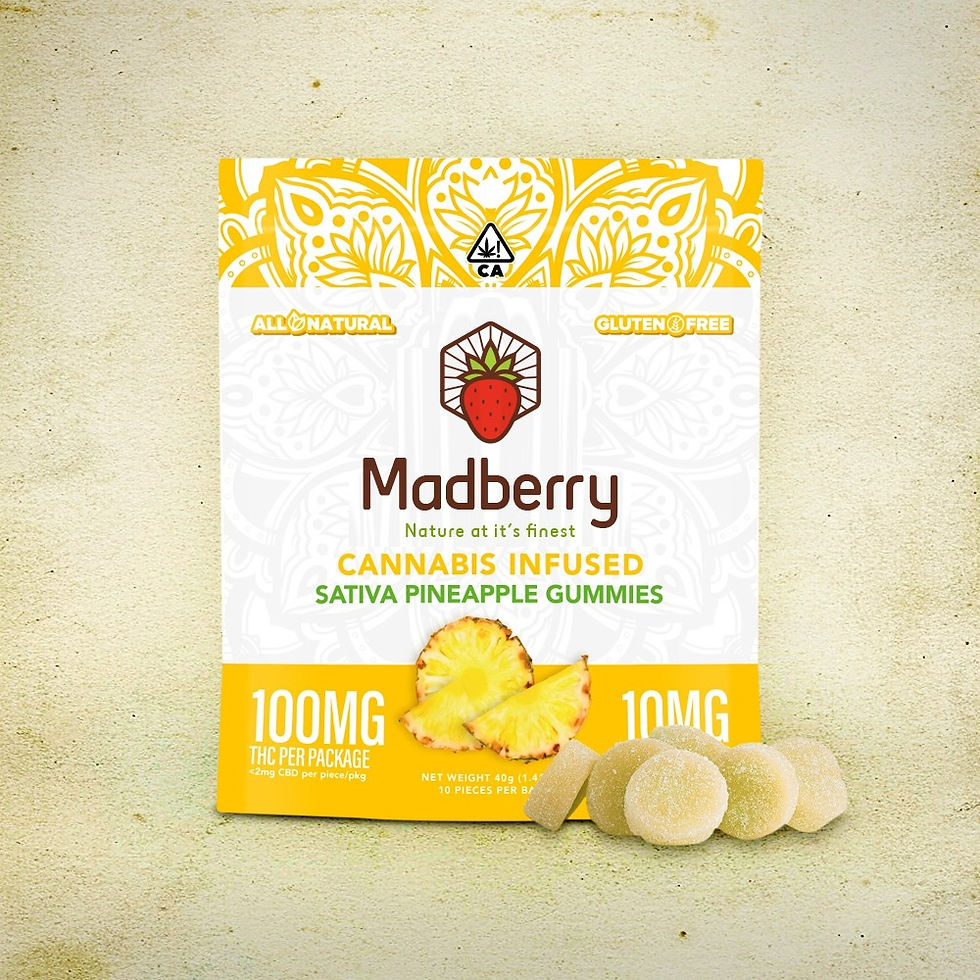 Madberry - Pineapple Sativa Gummies – 100mg THC - Full Spectrum Infused